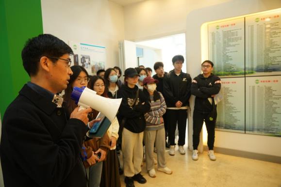 圖2 向同學們介紹公司的發(fā)展歷程及研發(fā)生產(chǎn)的先進環(huán)境監(jiān)測儀器設備