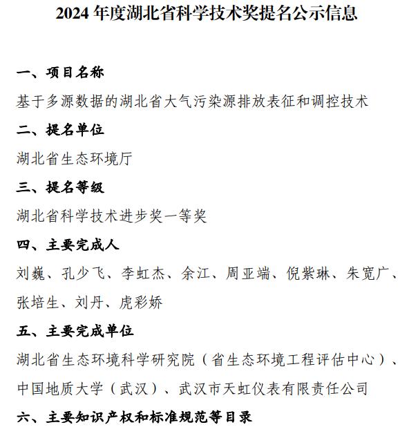 2024年度湖北省科學技術(shù)獎提名公示信息