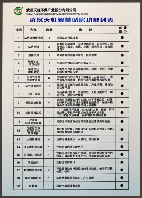 1、站房溫濕度自動監(jiān)控:所有的點式監(jiān)測設(shè)備均需要處在特定溫濕度范圍內(nèi)的環(huán)境中(溫度在25℃±5℃范圍內(nèi),相對濕度保持在80%以下),才能保證正常運行,一旦站房溫度過高導(dǎo)致儀器機箱溫度過高報警或者站房溫度過低導(dǎo)致采樣管路產(chǎn)生冷凝水都會影響監(jiān)測數(shù)據(jù)。智慧站房可保證站房內(nèi)溫度整體均勻,站房內(nèi)安裝的帶數(shù)字輸出功能的溫濕度儀可采集環(huán)境溫濕度,結(jié)合空調(diào)的遠程控制功能,可實現(xiàn)站房溫濕度環(huán)境監(jiān)控。