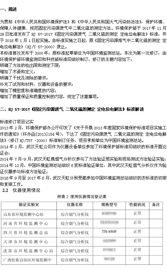 解讀 HJ 57-2017 《固定污染源廢氣 二氧化硫的測定 定電位電解法》新標(biāo)準(zhǔn)