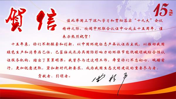 本次論壇恰逢承辦方中環(huán)聯(lián)合認證中心成立15周年,原全國人大環(huán)境與資源保護委員會主任委員、中華環(huán)境保護基金會名譽理事長、中環(huán)聯(lián)合認證中心第一任管委會主任、被譽為“中國環(huán)境保護之父”的曲格平先生為本次論壇發(fā)來賀信:勉勵大家不忘初心,砥礪前行,更加銳意進取,緊扣新時代新要求,成為我國生態(tài)文明建設的參與者、貢獻者、引領者。