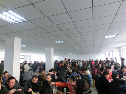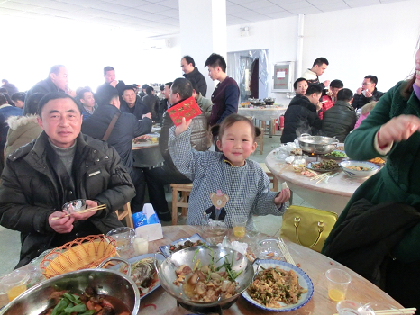 大食堂里濟(jì)濟(jì)一堂,吃年飯、敘友情